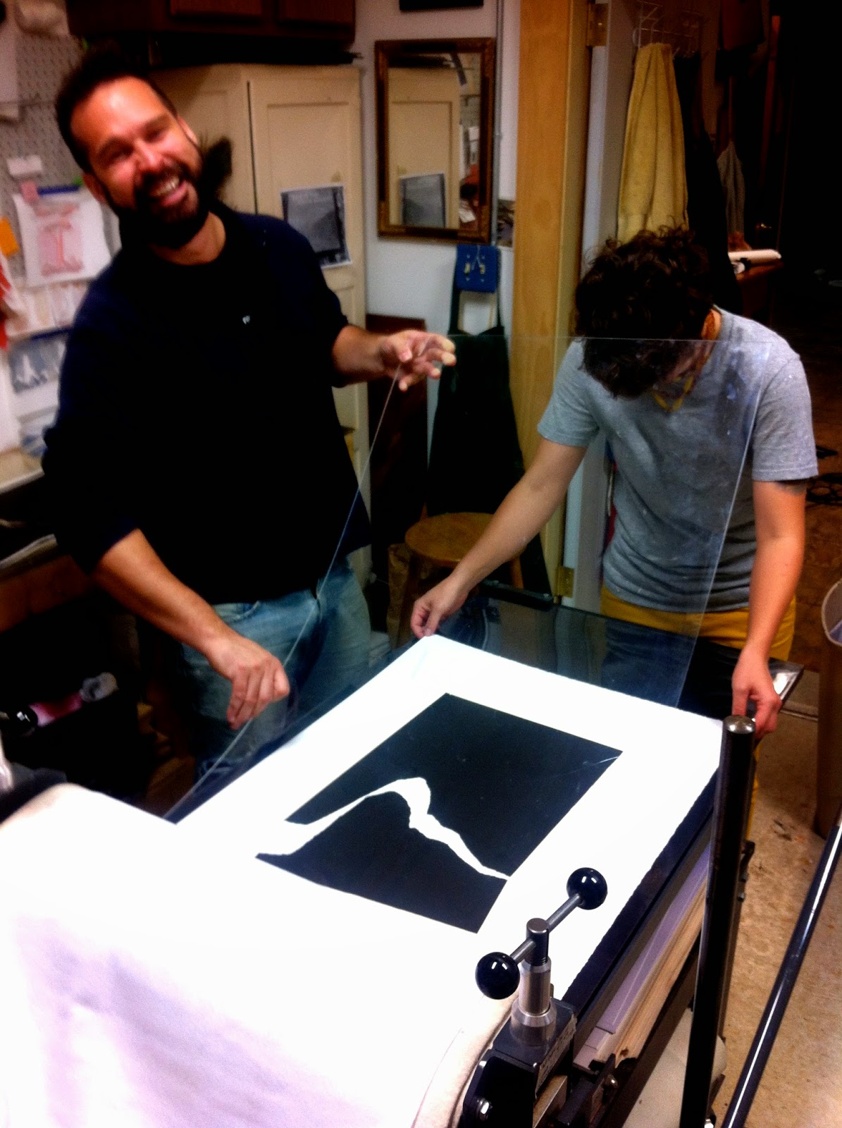 we “scaled” up. We rolled massive “flats” of black ink onto the press and used